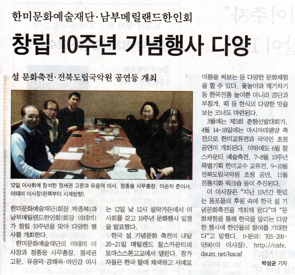 제목 : 창립10주년 기념행사(설 문화축전,전북도립국악원 공연등 개최)한미문화예술재단*남부메릴랜드한인회