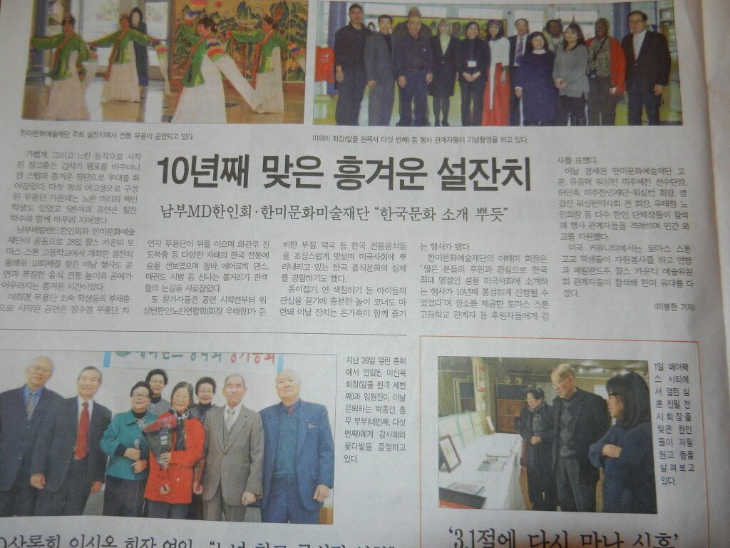 제목 : 10년째 맞은 흥겨운 설잔치 남부MD한인회.한미문화예술재단 "한국문화 소개 뿌듯" <한국일보 기사>