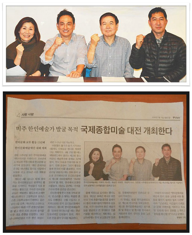 제목 : 2016년 1월 11일(월) 중앙일보 유현지 기자 / 한미문화얘술재단 사업 계획 발표