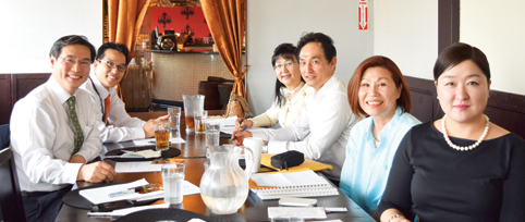 이태미 이사장(오른쪽서 두 번째) 등 한미문화예술재단 관계자들이 김동기 총영사(왼쪽), 김학조 동포담당 영사와 간담회에서 포즈를 취하고 있다.한미문화예술재단(이사장 이태미)이 25일 김동기 총영사와의 간담회를 통해 주류사회를 대상으로 한 문화외교에 대한 관심과 협조를 요청했다.