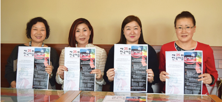 한미문화예술재단 관계자들이 한국미술국제대전을 알리고 있다. 왼쪽부터 주상희 무용분과위원장, 이태미 이사장, 김현정 미술분과위원장, 이정화 홍보실장.