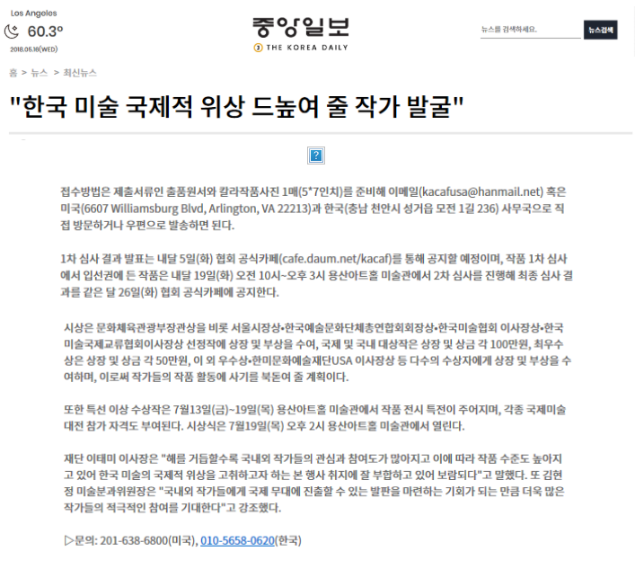 제목 : "한국 미술 국제적 위상 드높여 줄 작가 발굴" 제25회 한국미술국제대전 작품 공모 오는 5월 31일까지(중앙일보-진민재기자)