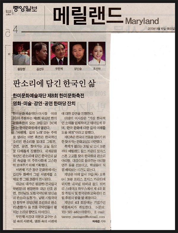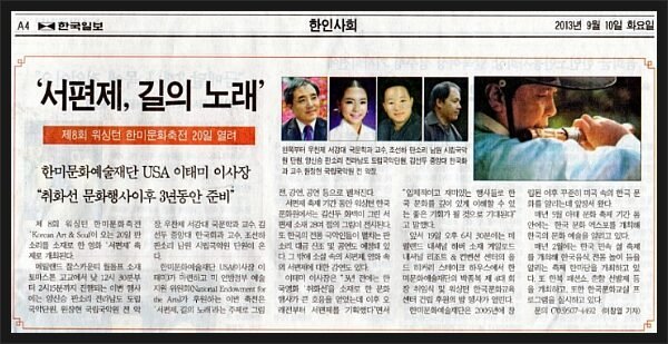 제목 : 2013_9_20_제8회 한미문화축전 중앙일보, 한국일보 기사)