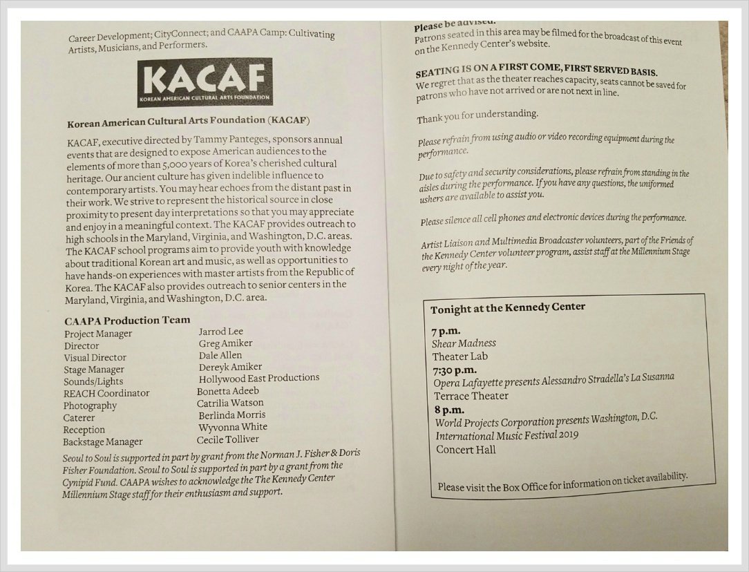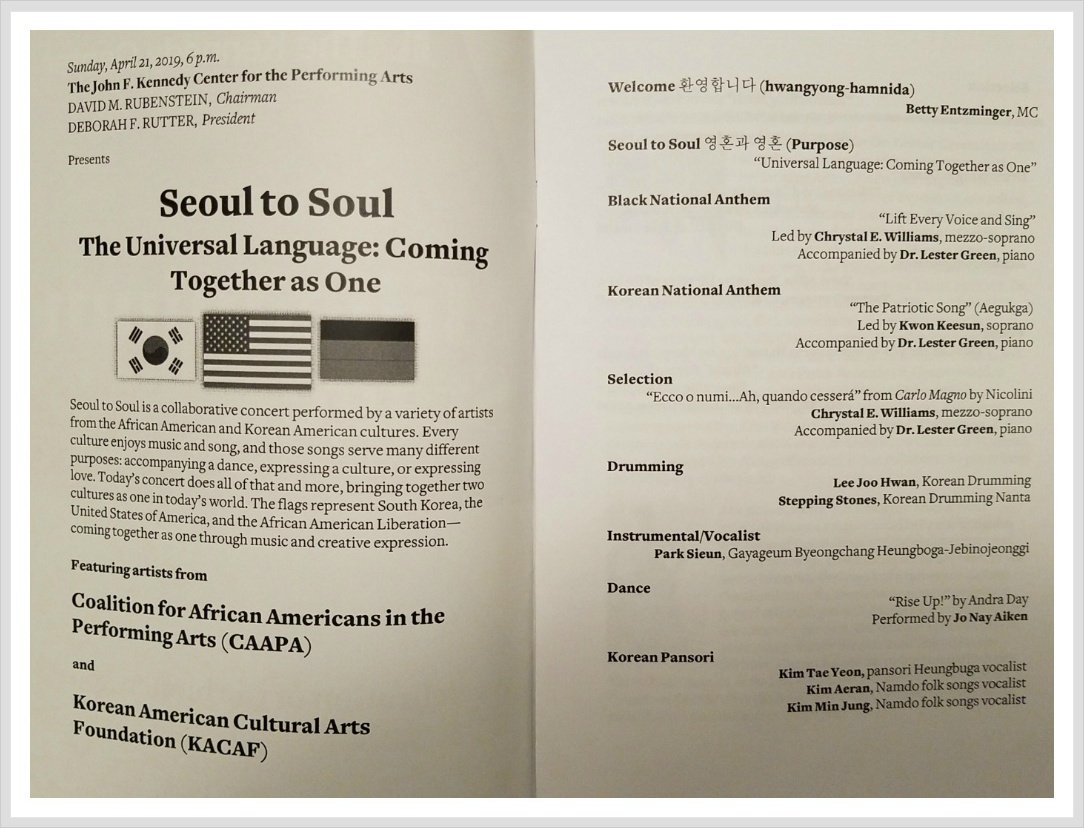 제목 : 2019년 4월21일 제14회 아태문화의 달 기념 Seoul to the Soul 케네디센터 프로그램